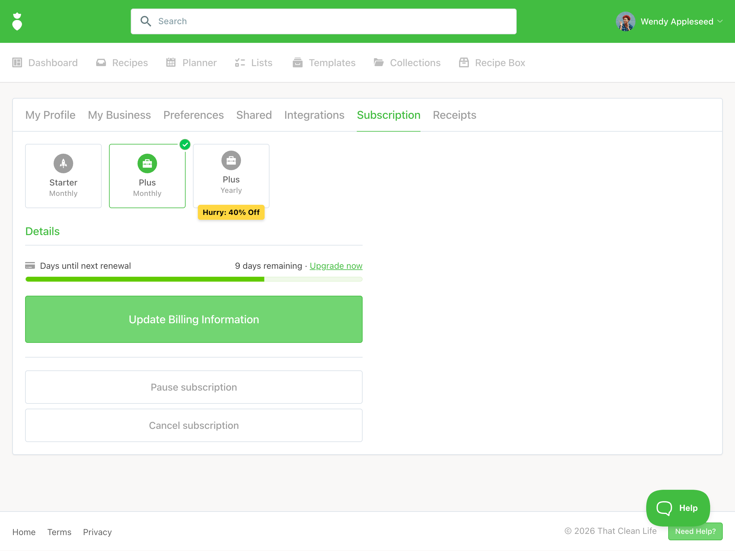 - The ability to update your billing information