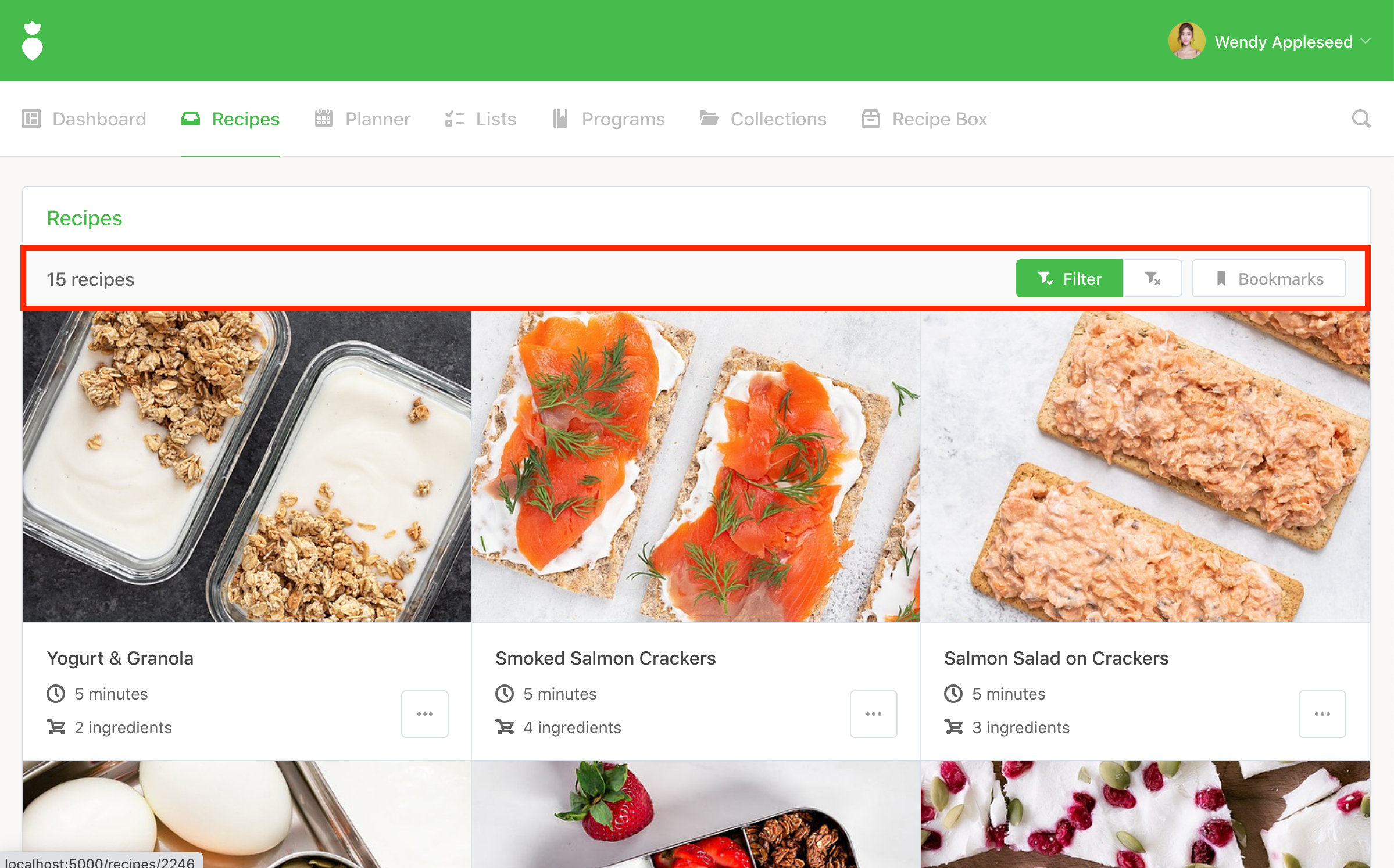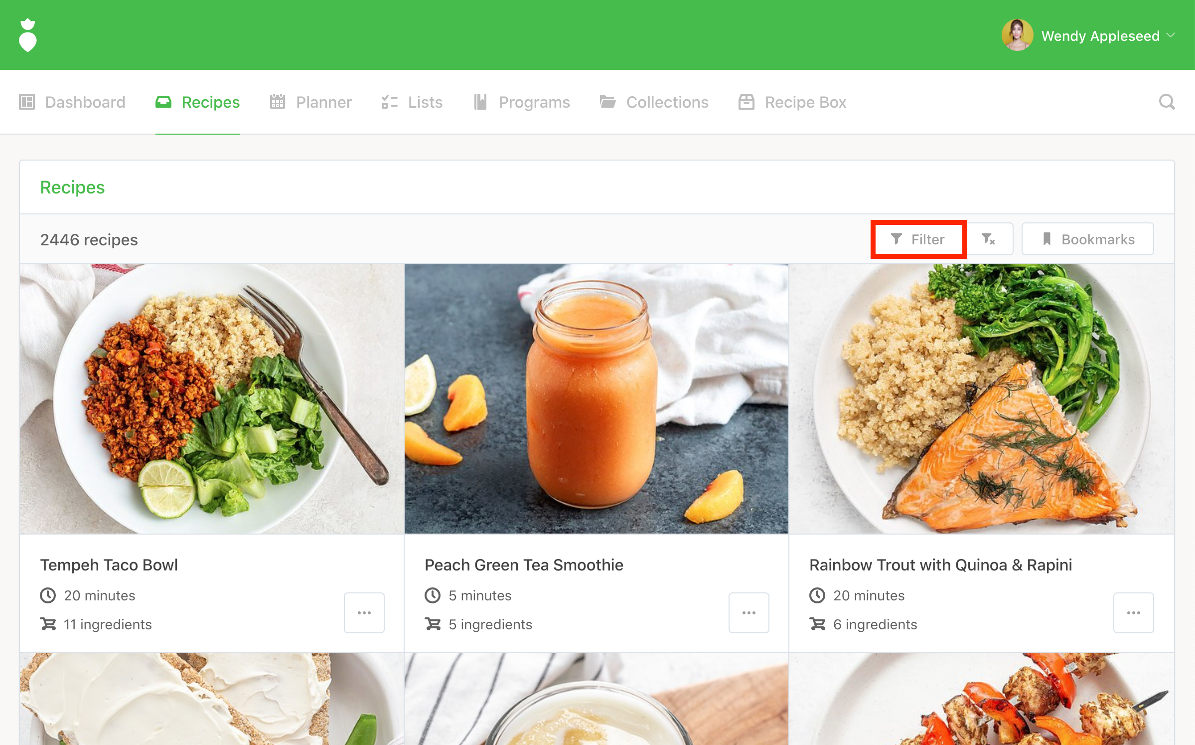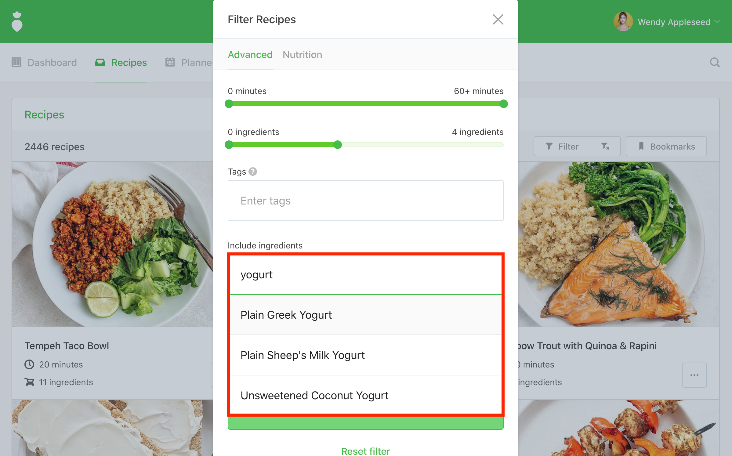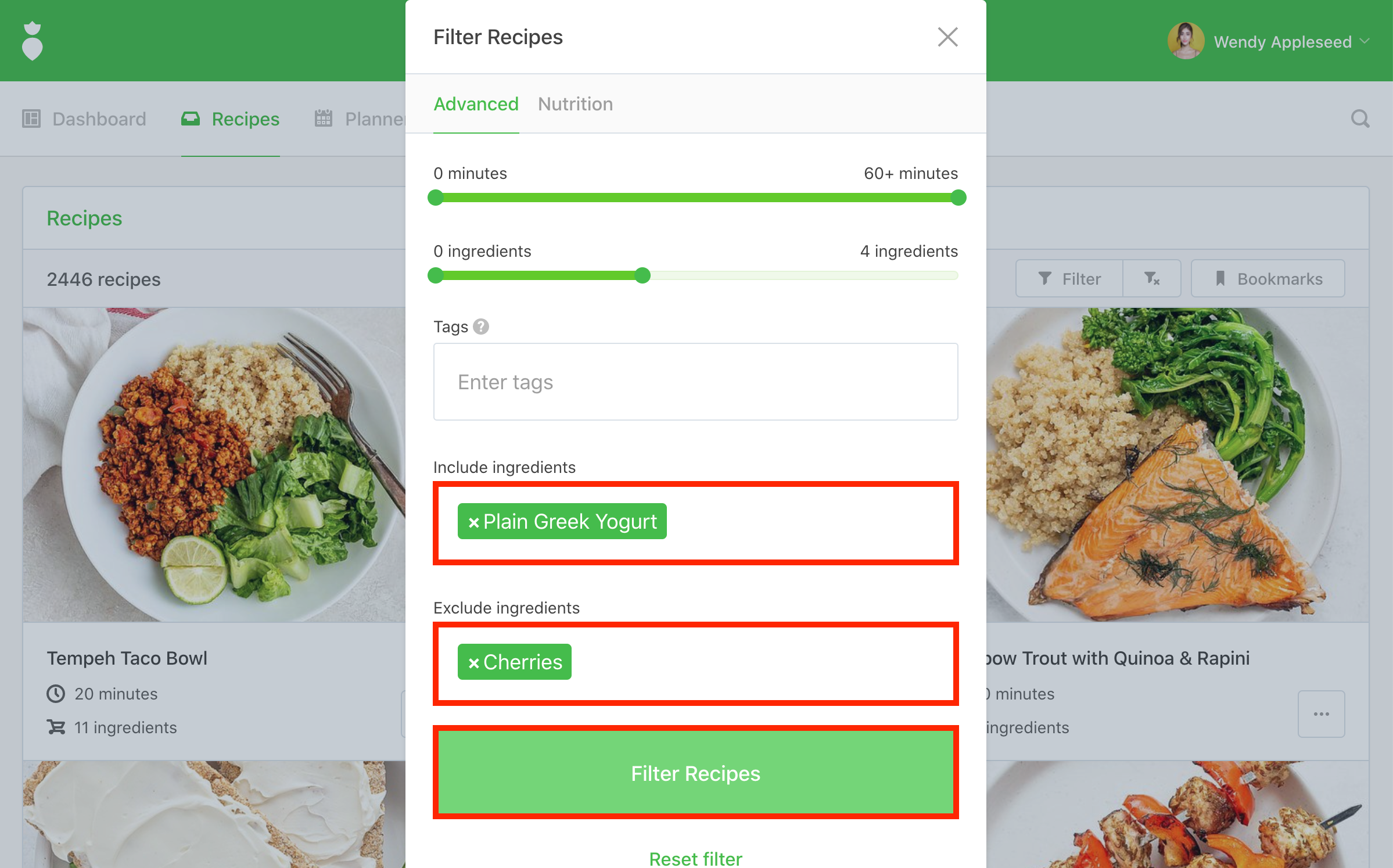 Filter Recipes button to generate your results: