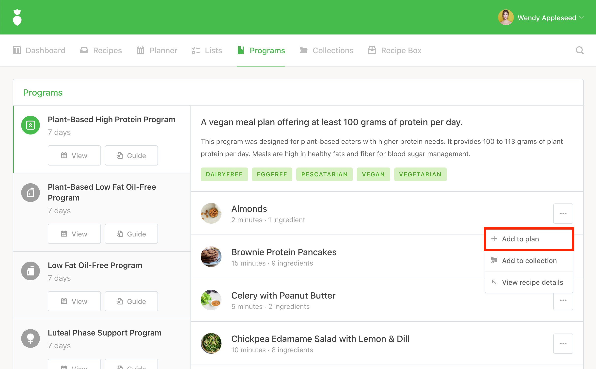 Voila! The recipe has been successfully added to your plan:
