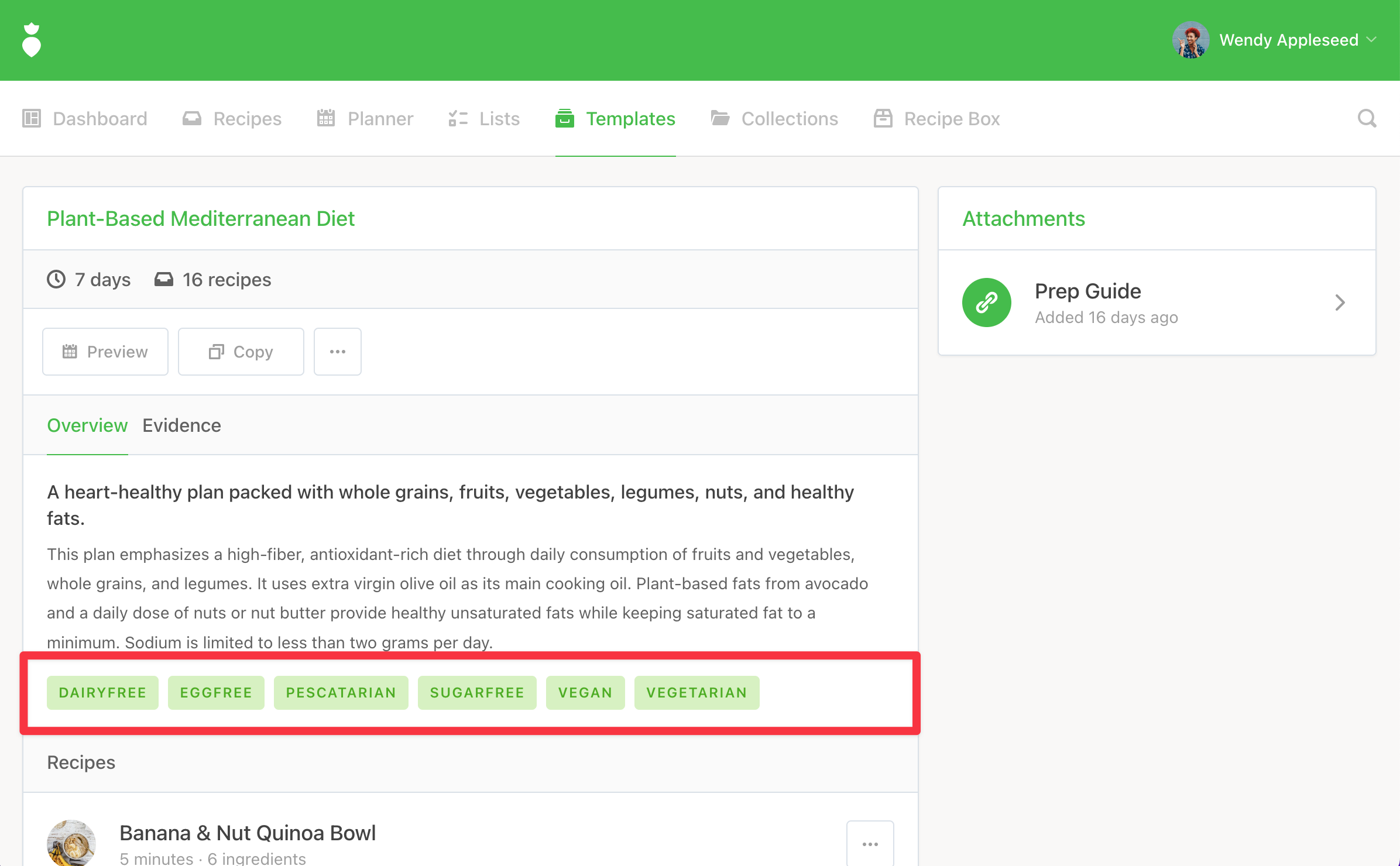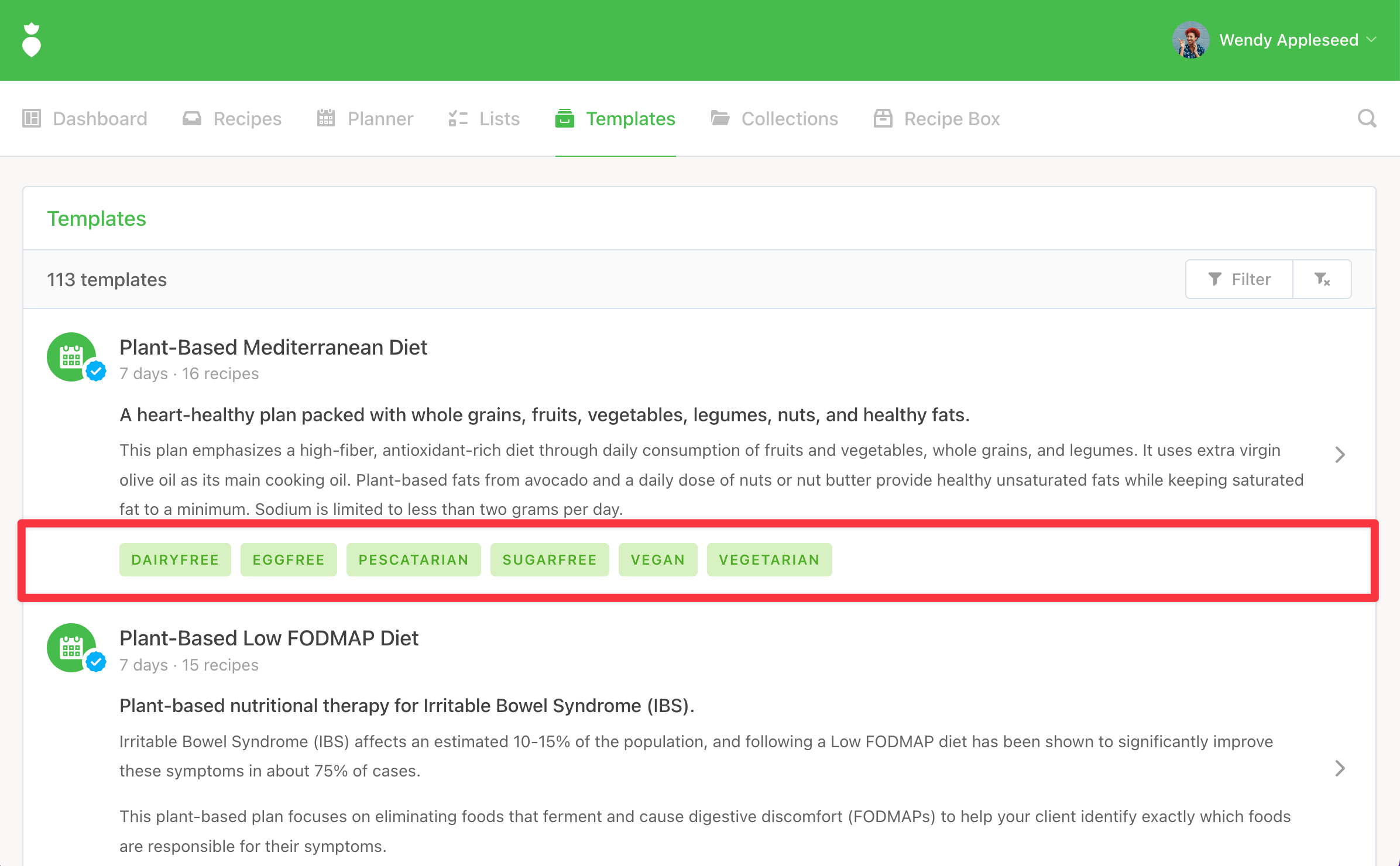 We list all the tags that apply to each of our Templates based upon the recipes included. View the templates directory or any template page and all related tags will be listed below each respective template's Overview: