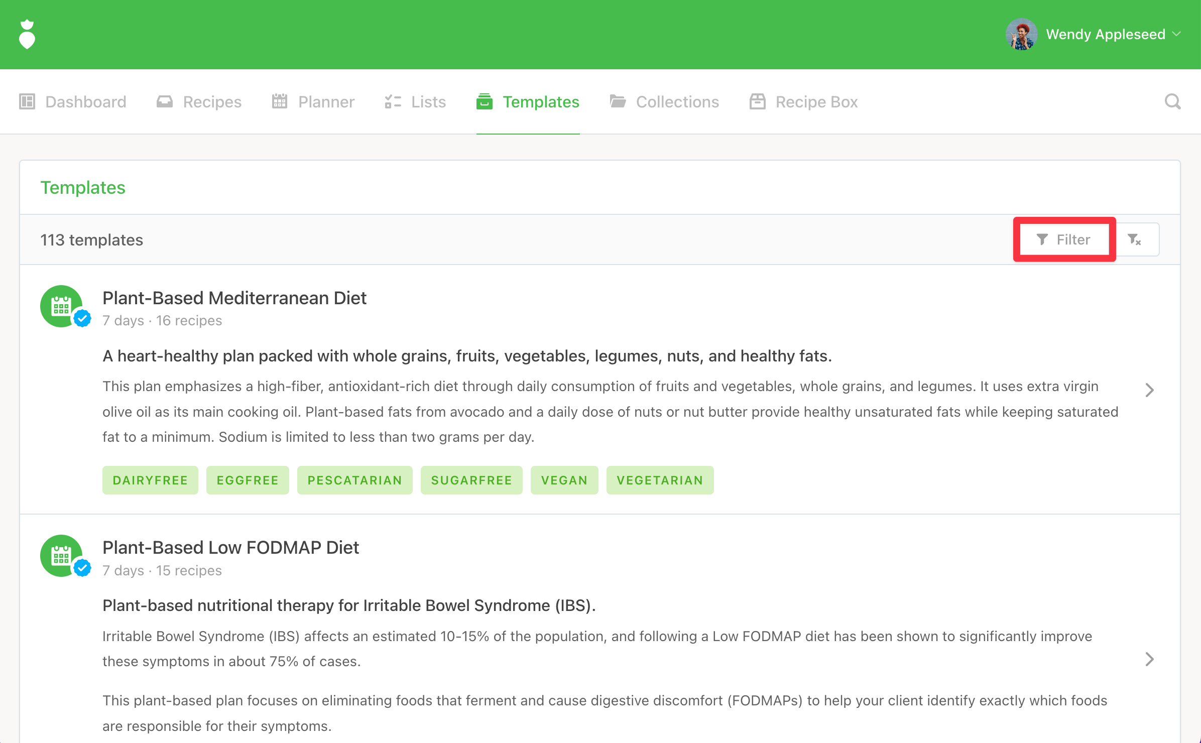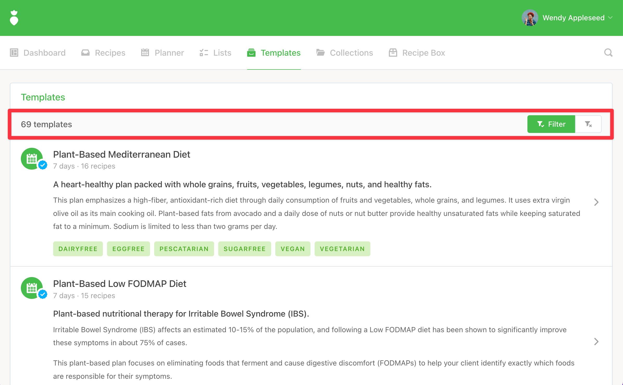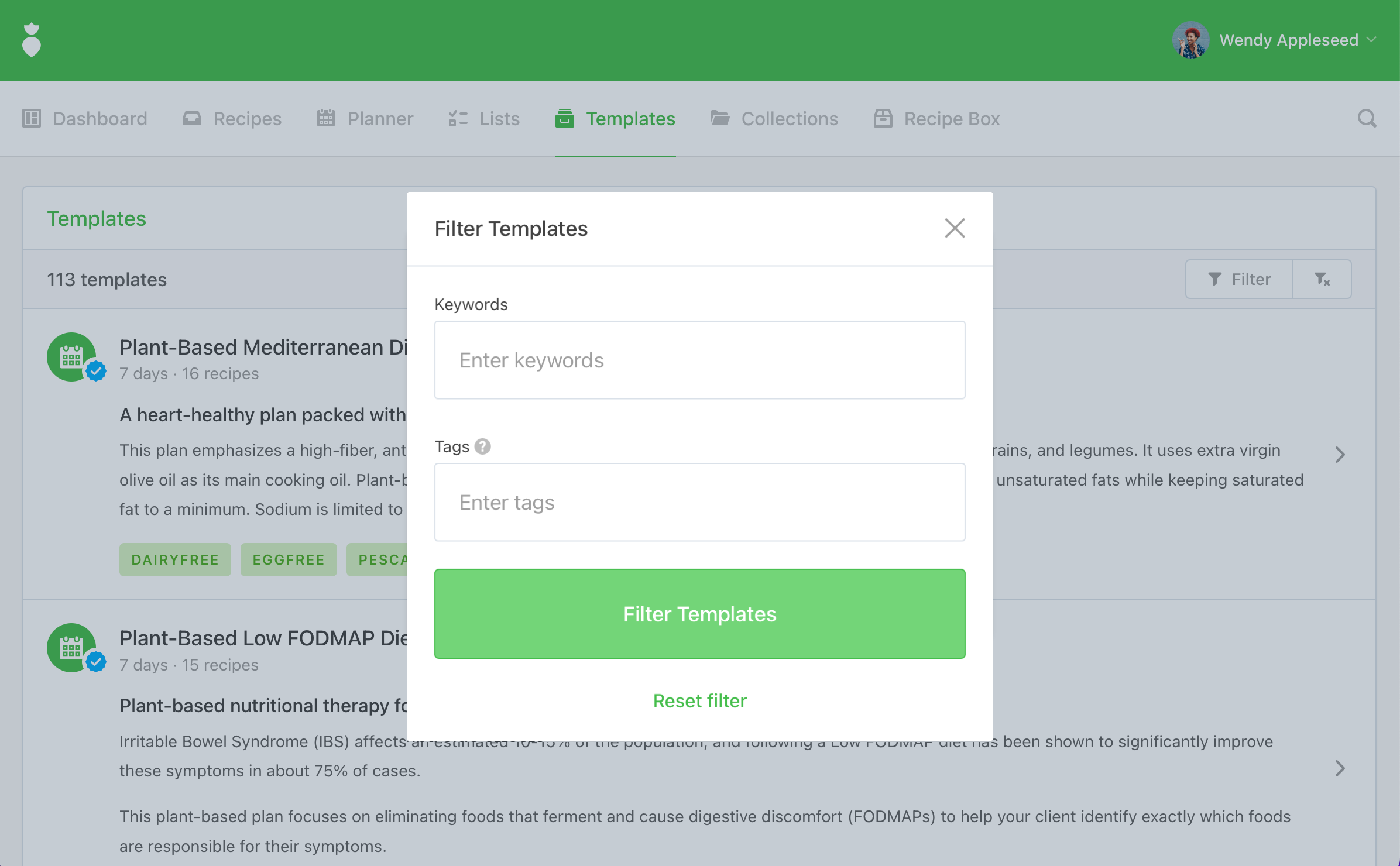 Voila! You'll be presented with a filtered list of Templates matching your selected "Keywords" and/or "Tags":