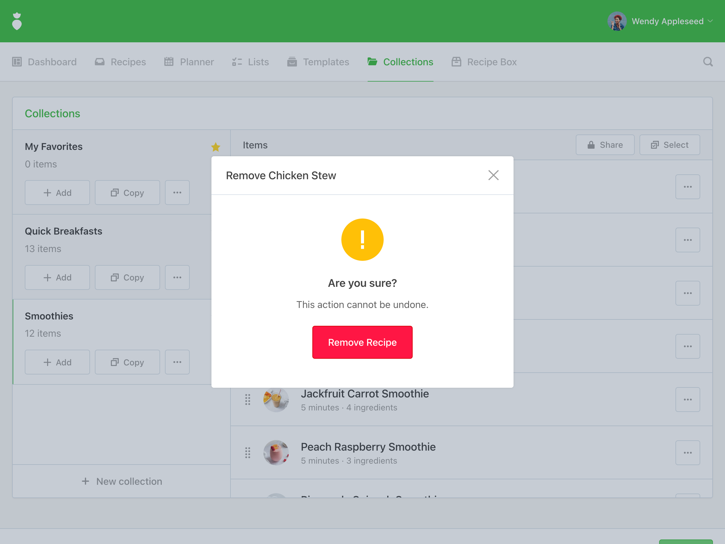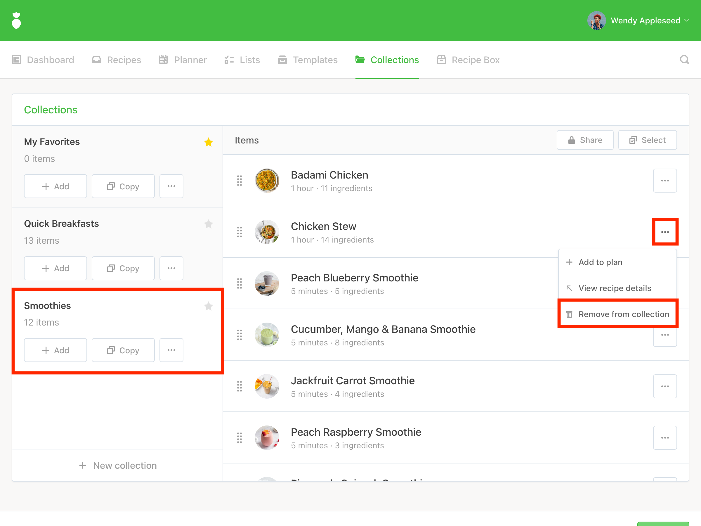 To remove a recipe or plan from a collection is simple. Here's how: