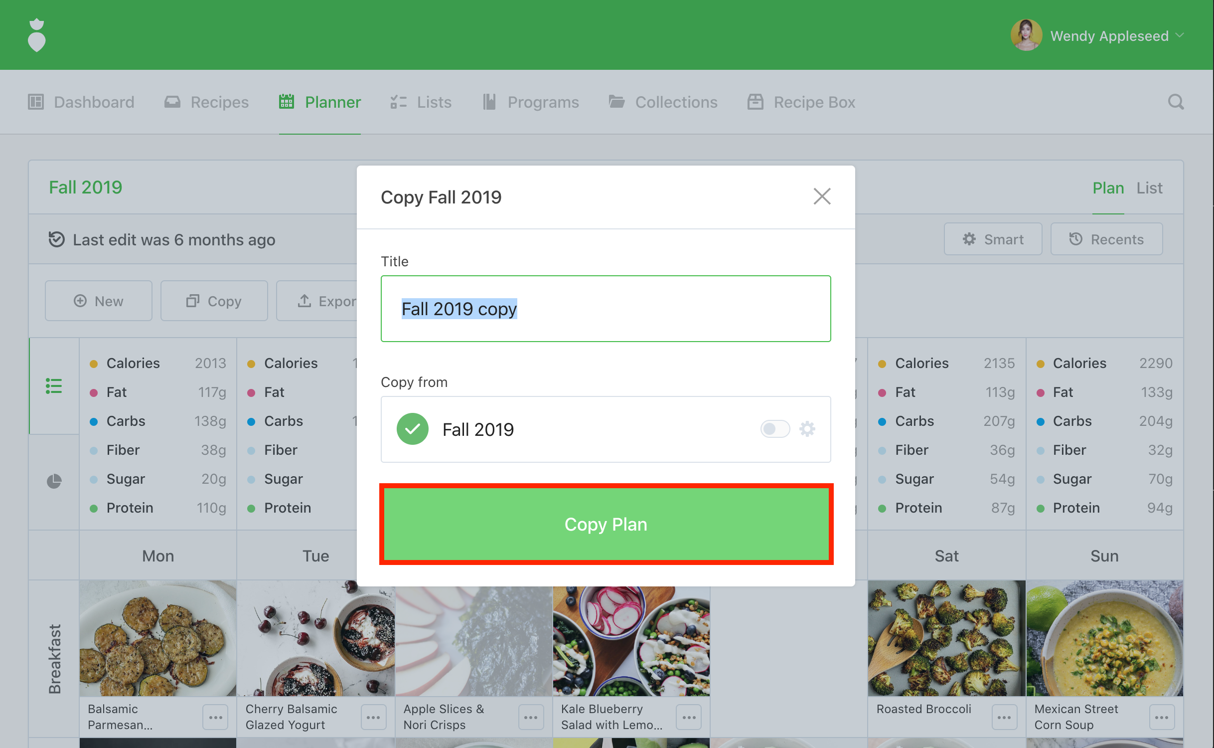 Copy Plan button.
