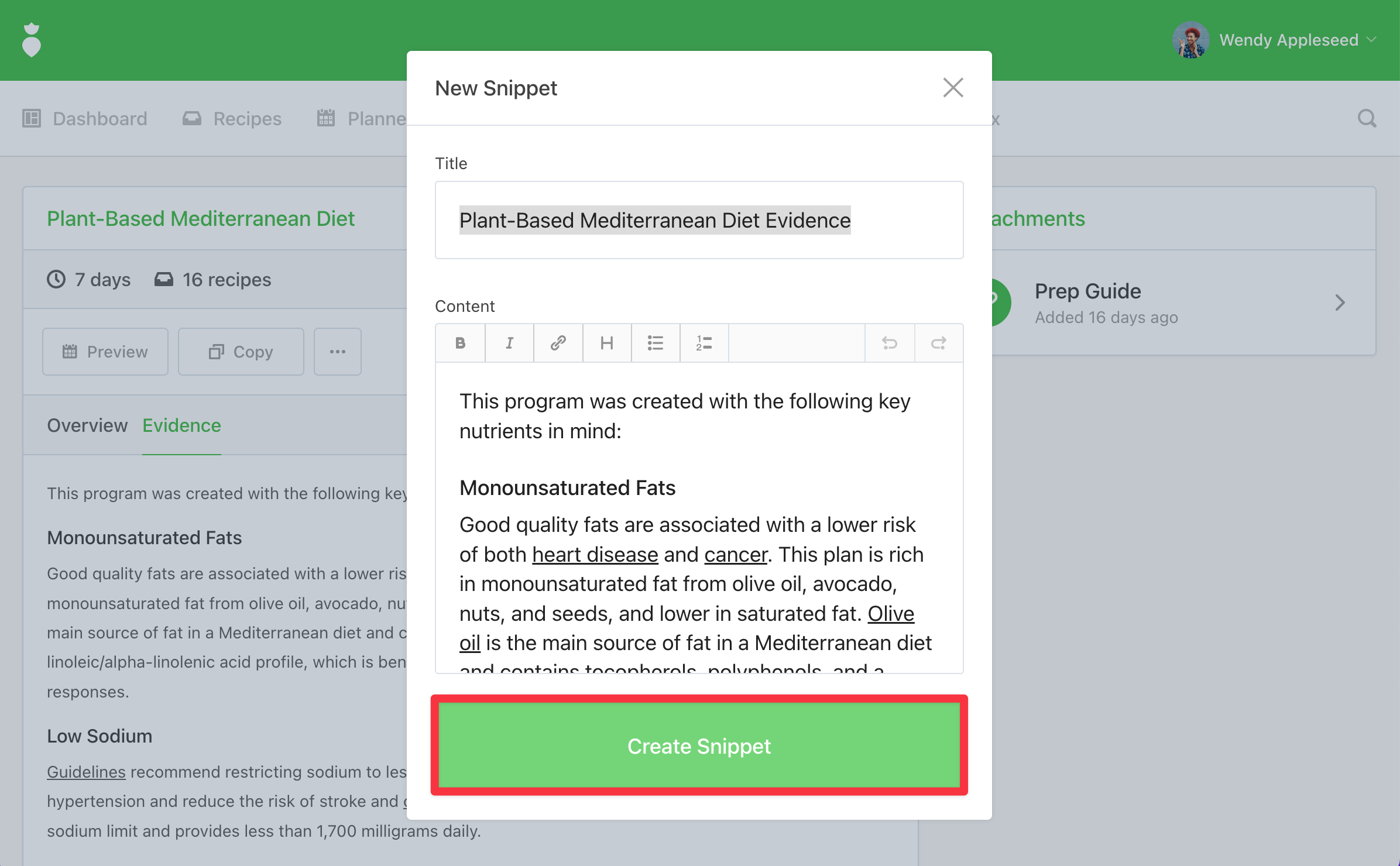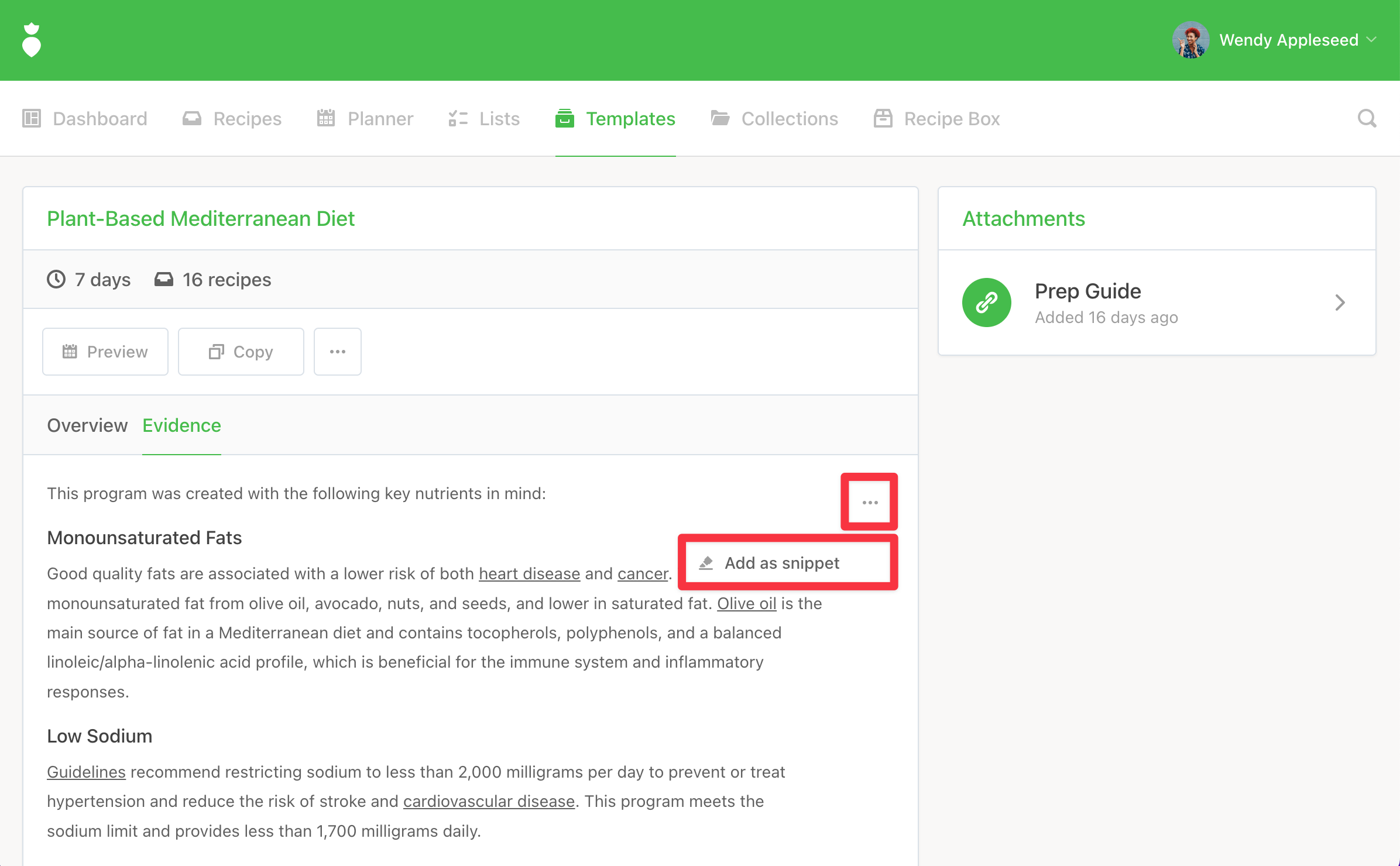 Are you wanting to provide more evidence-based research in an easily digestible format for your clients to understand? If so, simply follow the steps below to see our Add as snippet feature in action. You can now save any Template's Evidence as a Snippet so you can quickly include them in your Briefs to accompany your plan.