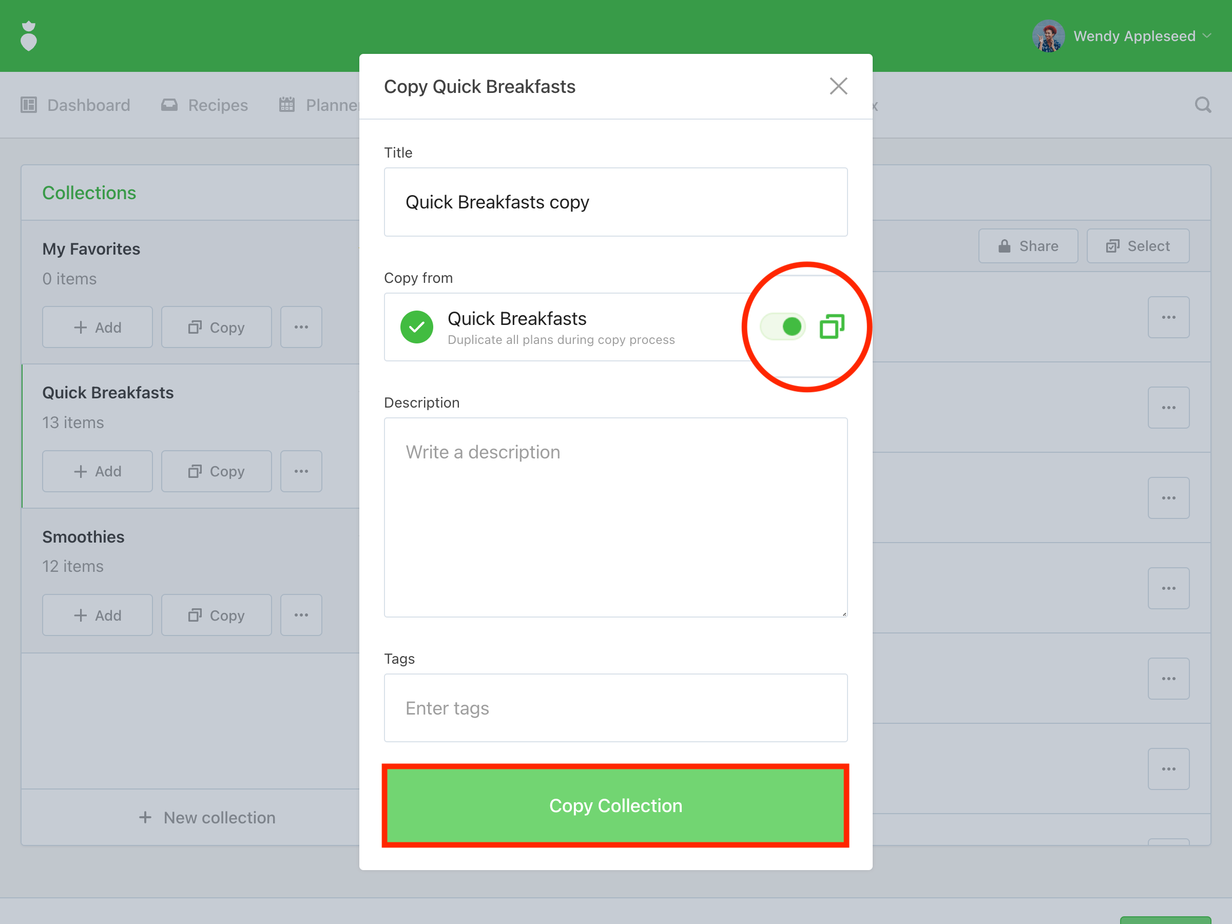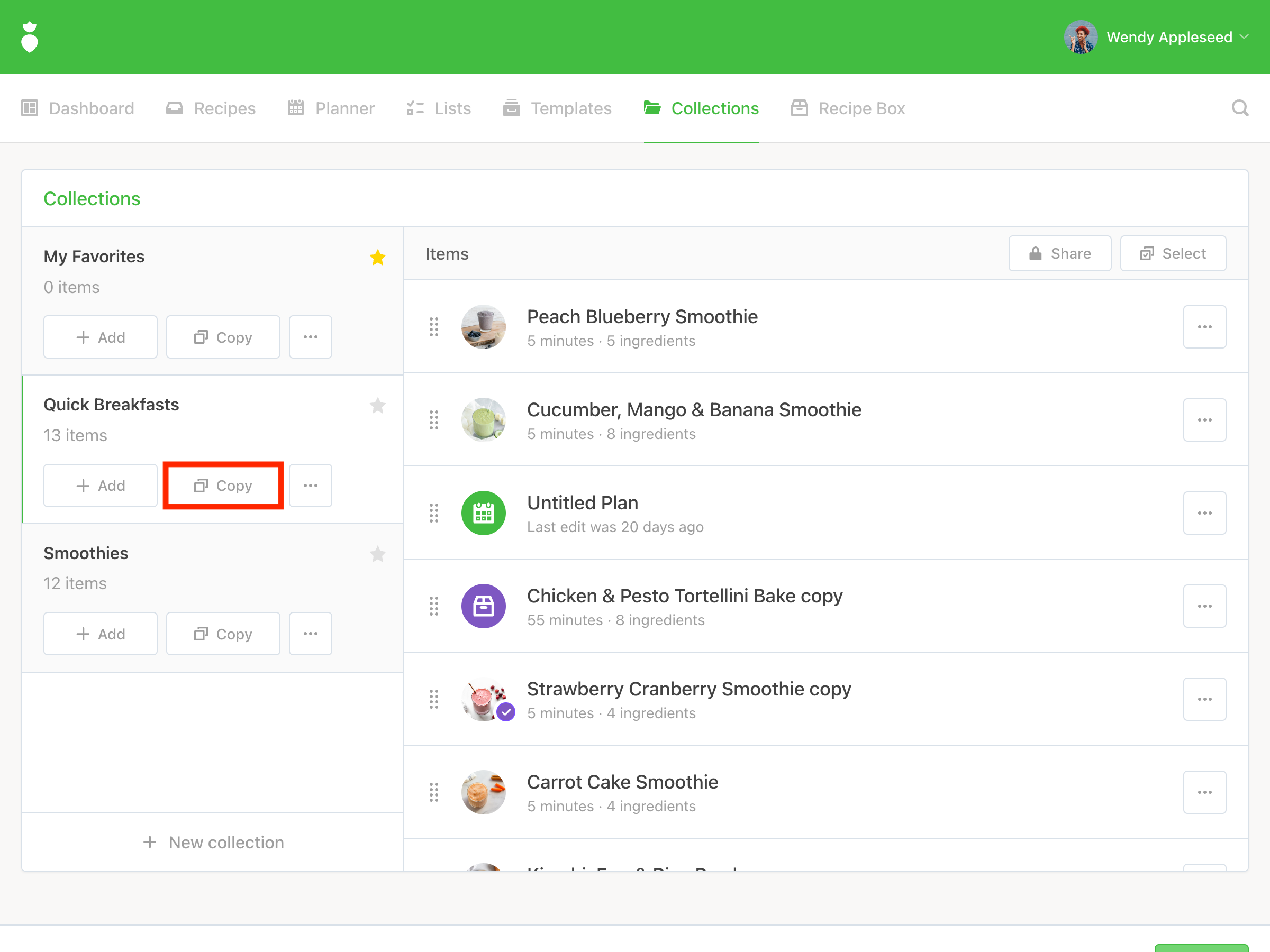 Note: When copying a Collection, by default all items are copied but not duplicated. However, you can toggle on "Deep Copy" which will make a duplicate of any plans in the Collection. This is helpful in cases where a practitioner wants to share a Collection containing plans with a group of clients and provide them individually with editing capabilities.