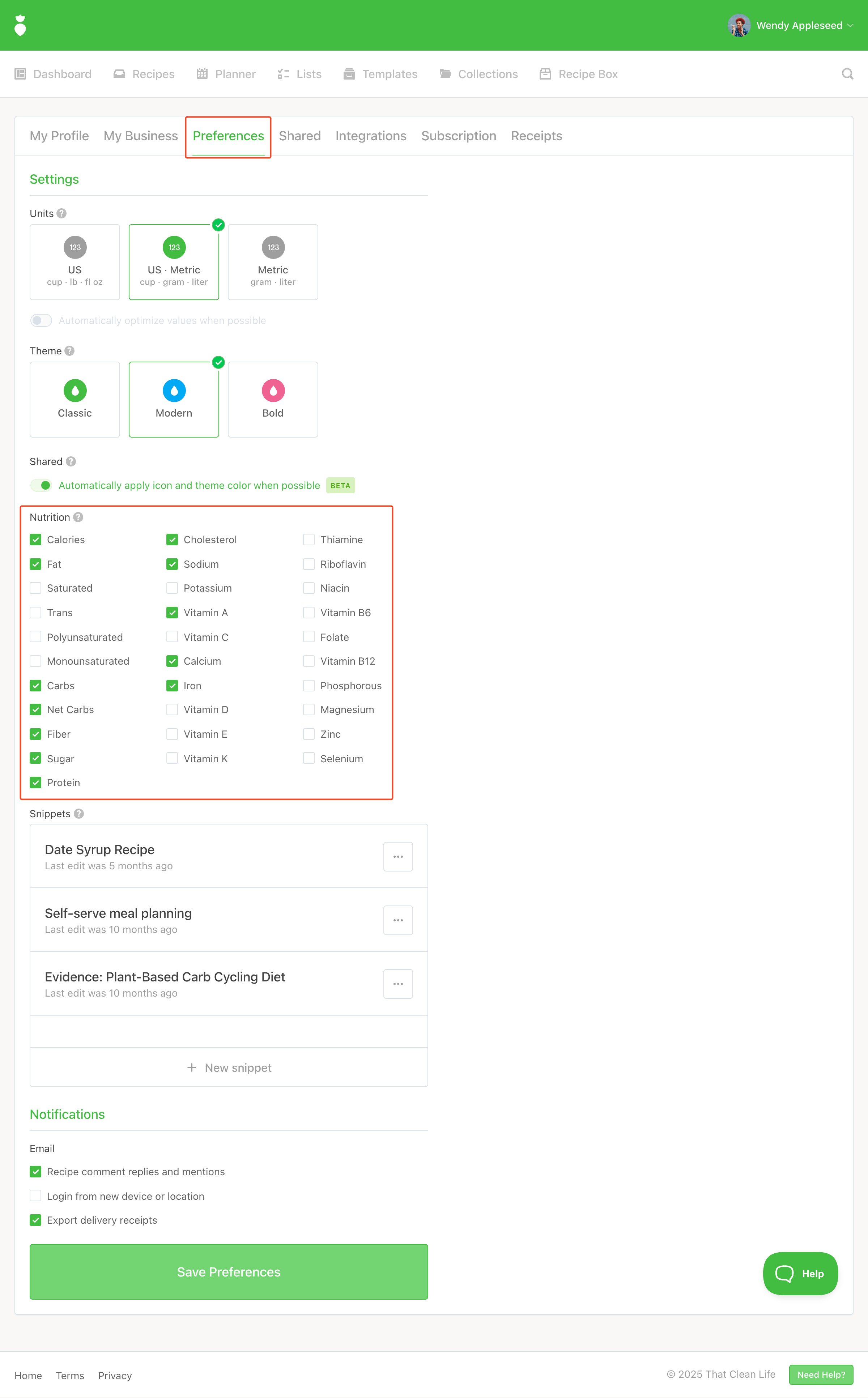 - PDF Exports (if you choose to include nutrition facts on your PDF exports)