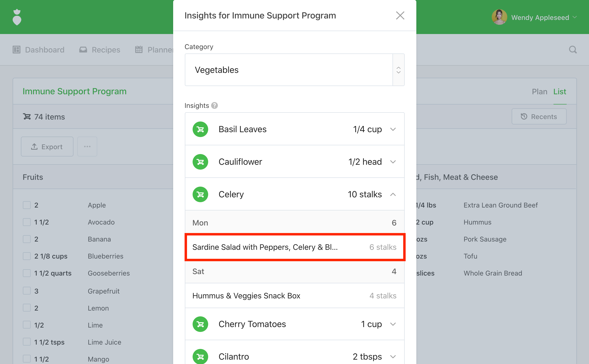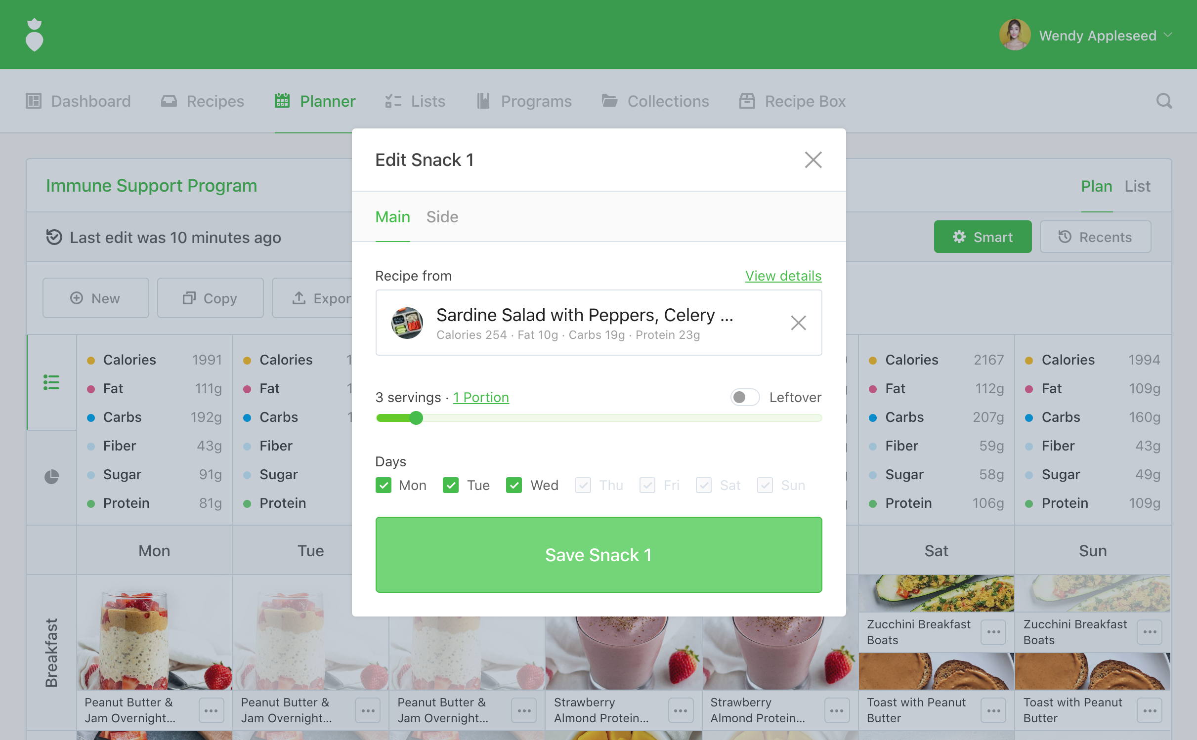 Click any recipe listed to easily view or edit it directly from within your Planner: