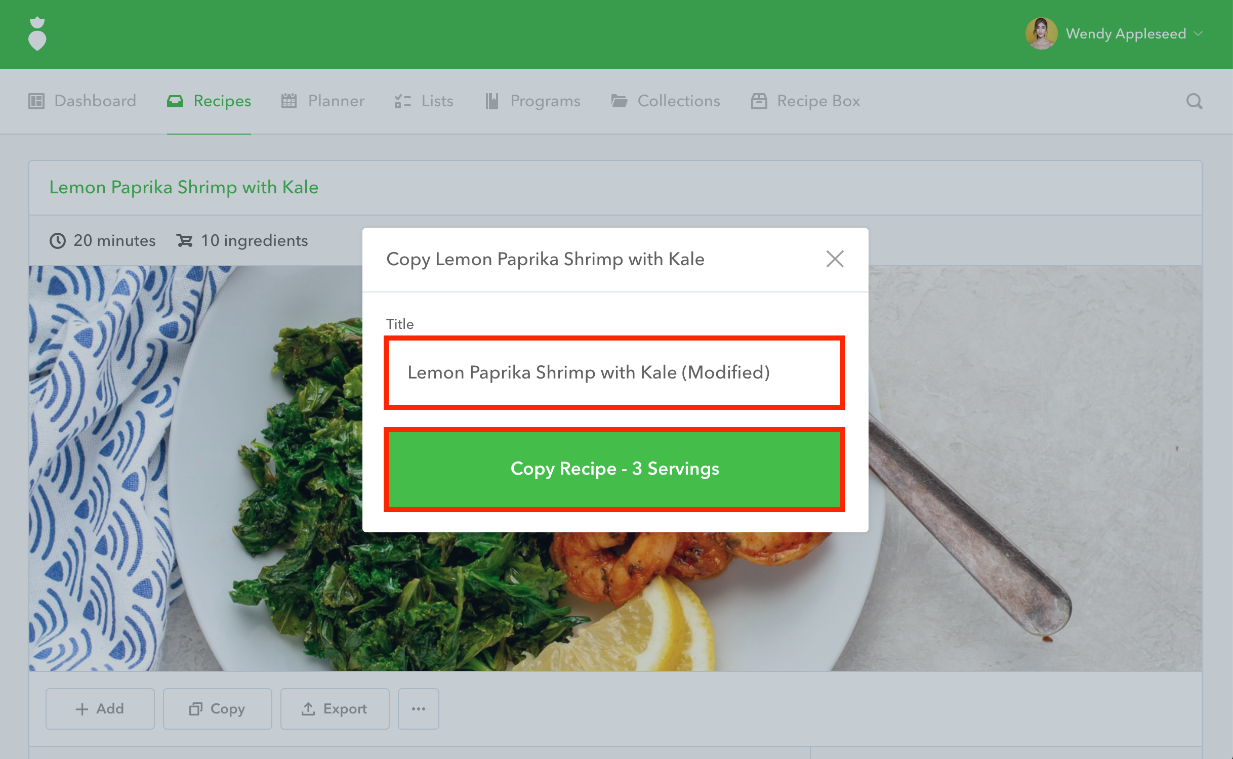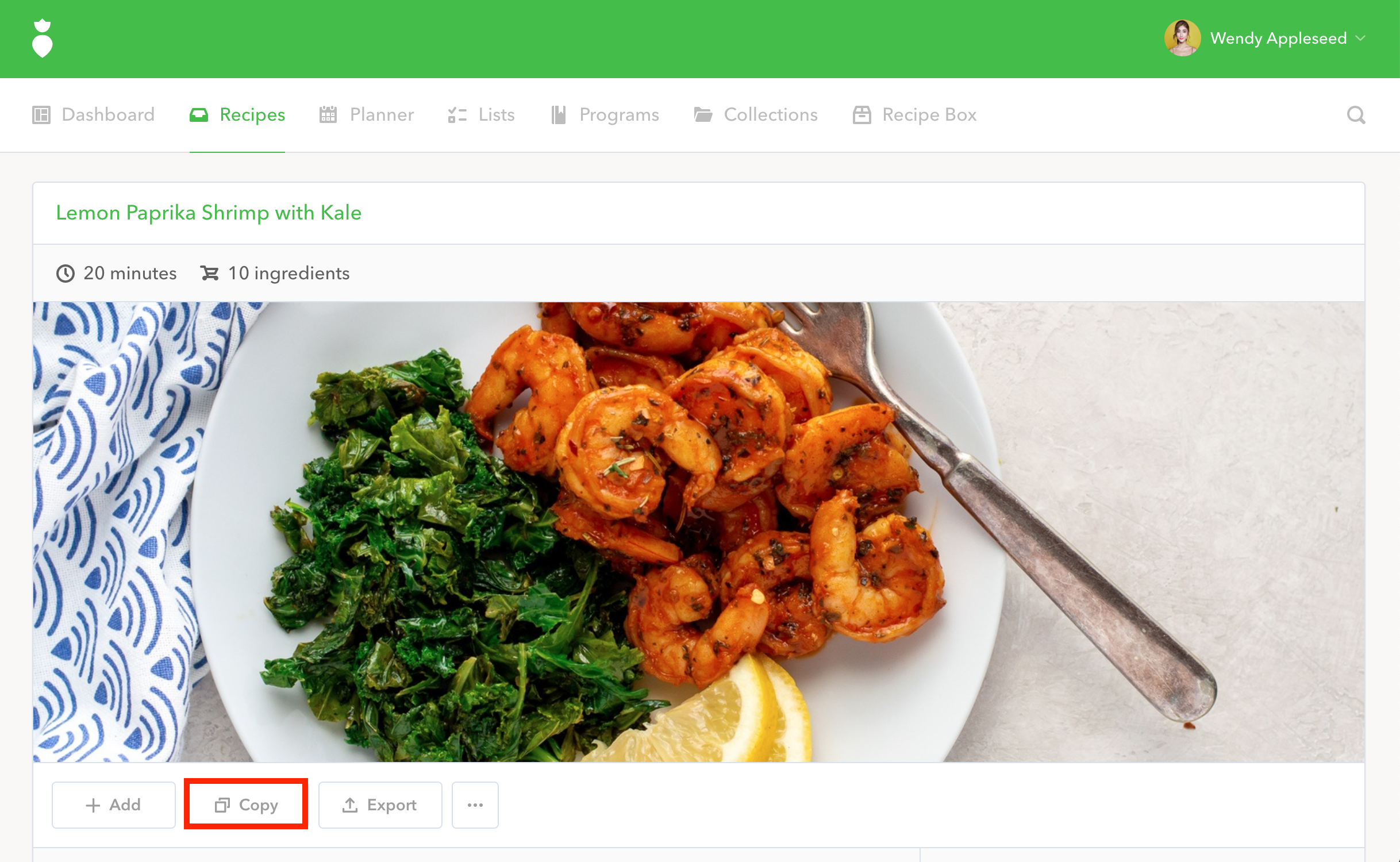 Copy Recipe button: