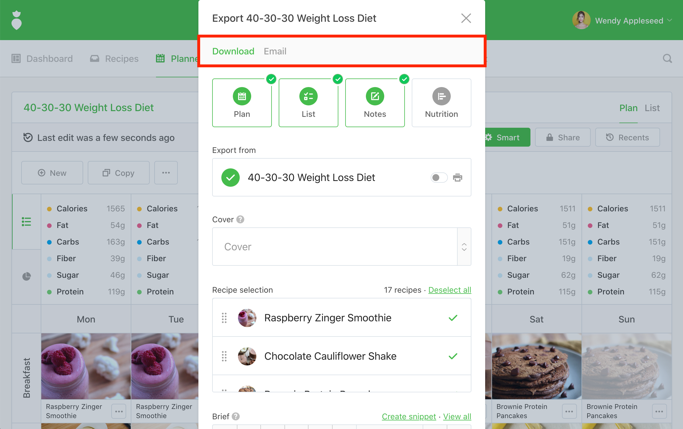 You'll be prompted with a dialog where you can select what to include or exclude with your export. Additionally, you can select if you would like to download the PDF to your own computer or have it generated and emailed it directly to your client: