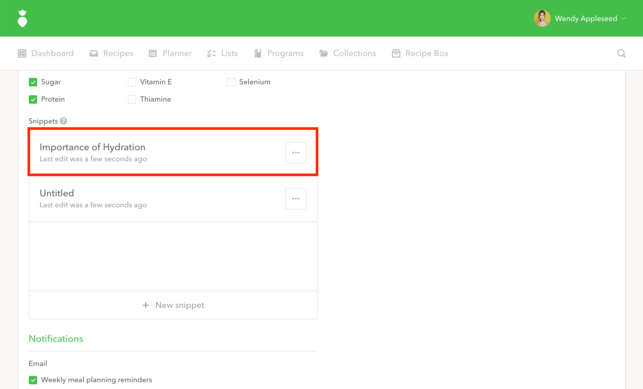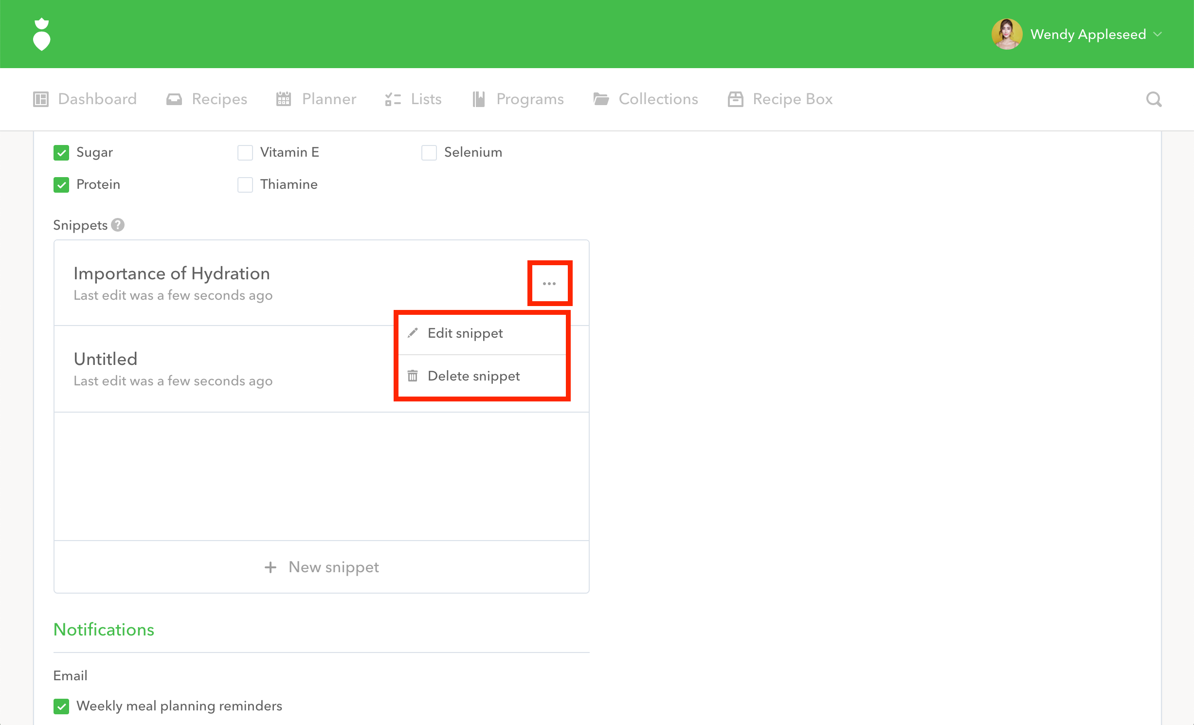 Additionally, you can easily edit and/or delete any snippet. Simply click on the icon with the three dots to the right of the Snippet that you would like to edit or delete.